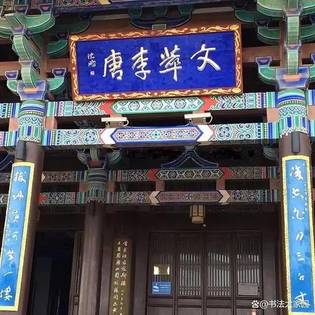 而沈鹏先生为蔡元培故居所题写的“学界泰斗,人世楷模”8个大字,绝对是一种绝唱般的存在,字形上的变化比较大,诸如“人”字,这个字的书写,给人的感觉是非常潇洒的,尤其是捺笔,这个捺笔的书写,有一个很小的钩带,更加突出了一种境界感,不仅如此,我们还会发现,这个字在书写上,还有一个非常突出的特点,撇笔几乎写成了竖笔的形式,更加有质感,可见, 他对结构的拿捏和掌控是十分有主张的,也是有着独到的见解的,不是吗?对于前面三幅作品,相信朋友们也一定会感到意外的,韵味上,有着明显的不同,尤其是一提到沈鹏,我们就会自然而然地联系到他的草书,而这里的题匾作品,却一改草书的韵味,变得相对沉稳,并且,还相对工整了不少,下面的两幅题匾作品,分别是“佛都”、“文萃李唐”,这里的两幅题匾,同样是精彩,并且,格调上同样与上面三幅有着明显的变化,不是吗?
